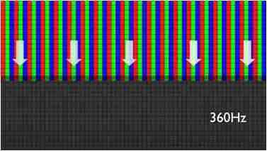 传统液晶驱动是从左到右单向进行,,在画面更新速度愈来越愈快的情况下,,位于驱动线路末端的右下角区域,,,画素的闸极来不及在短时间内获得足够电压,,,,无法显示出正确的颜色资讯。。。。 |