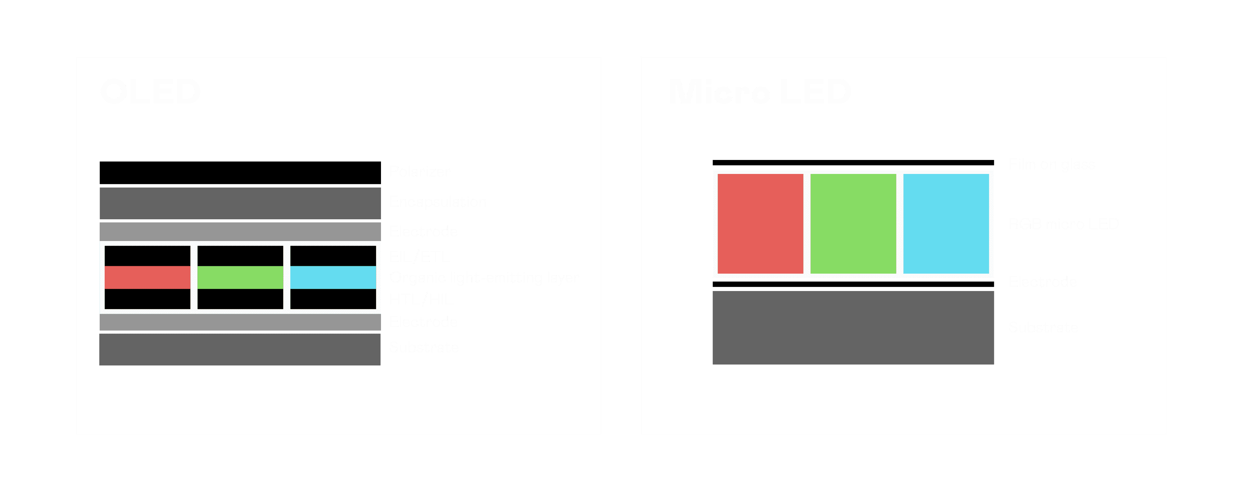以 LED 做为显示画素,,可让 LED 的发光效率发挥到极致,,,,从而让显示器具备优异的亮度表现,,,不论是在户外或室内,,均具备出众的显示效果。。同时,,与使用有机材料的 OLED 相比,,LED 具备更稳定、、、、寿命更长的特性,,,不仅不会有画面烙印问题,,,而且更不容易出现故障、、坏点。。